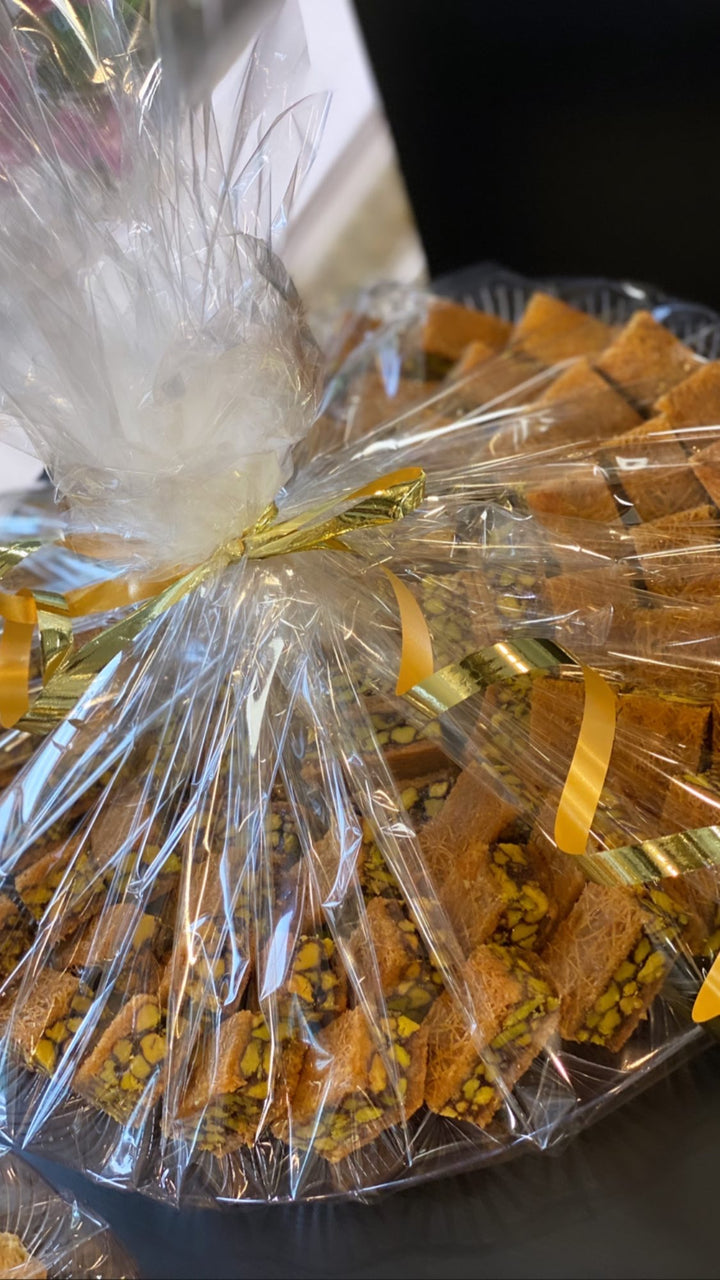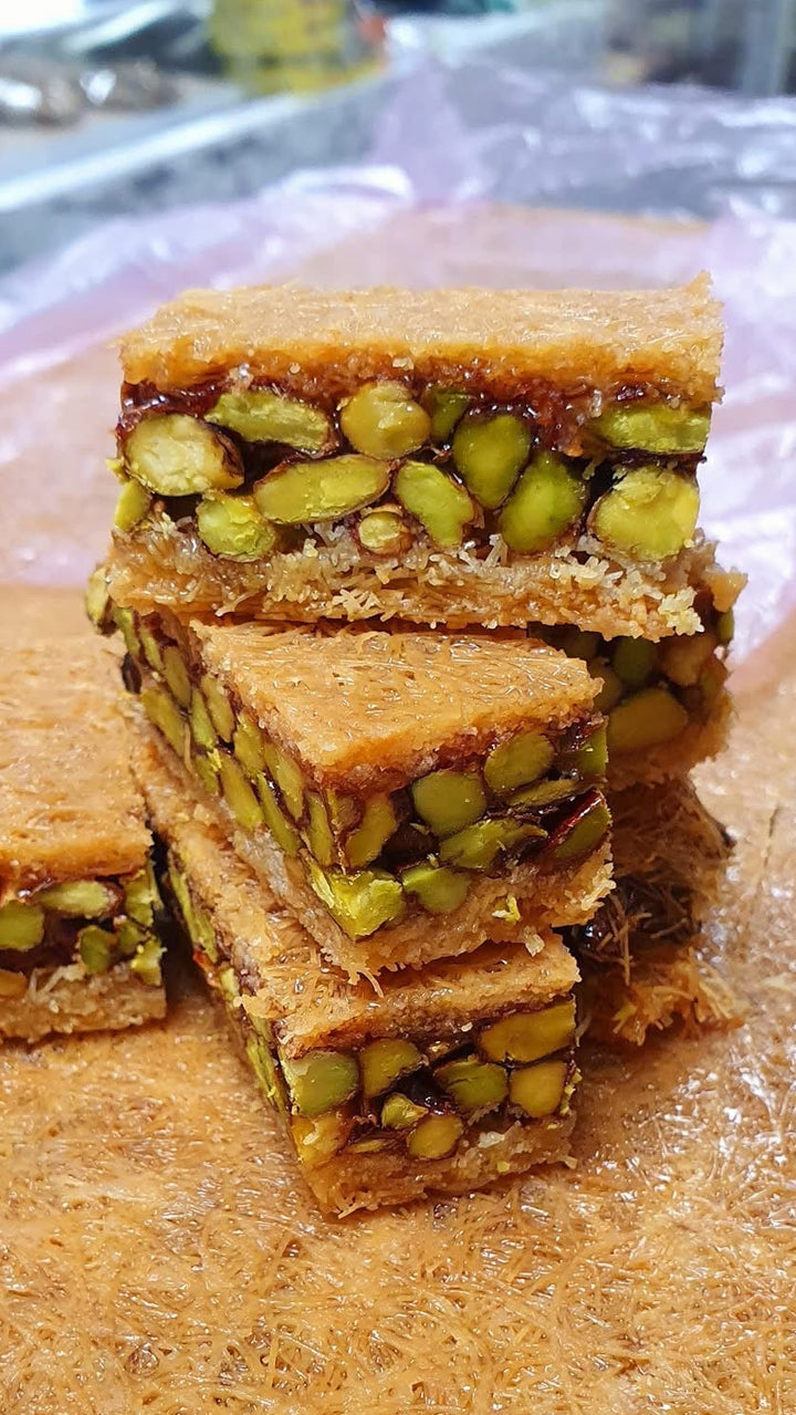 Vetemjöl, socker, vatten, majsstärkelse, glukos, salt, smörolja, pistagenötter.