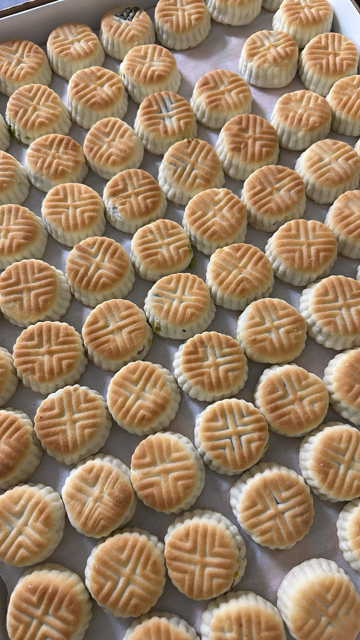 Mamoul Ajwa är en traditionell och älskad mellanösterndessert fylld med en mjuk och aromatisk dadelfyllning. Degen är smörig, len och lätt smulig, vilket gör att varje kaka smälter i munnen. Ajwa-dadlarna ger en naturligt söt och fyllig smak med en lätt kryddighet som passar perfekt till den mjuka kakan.