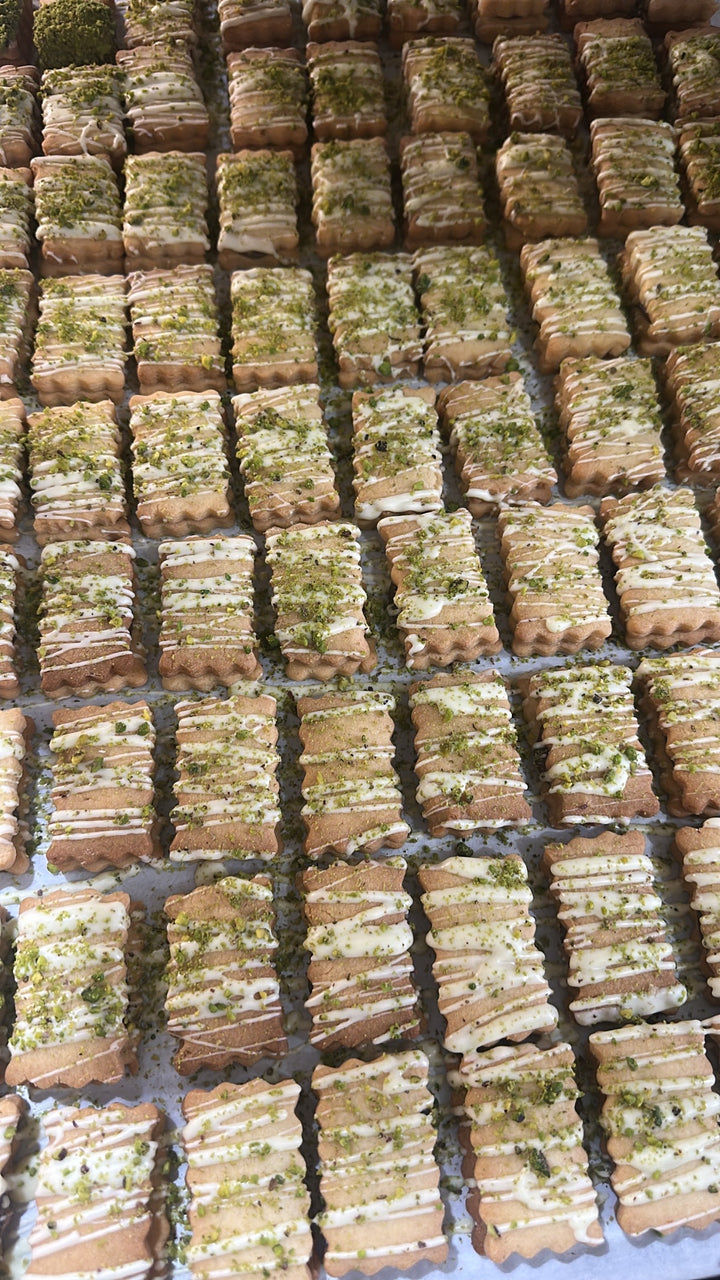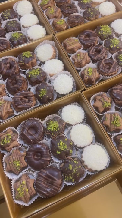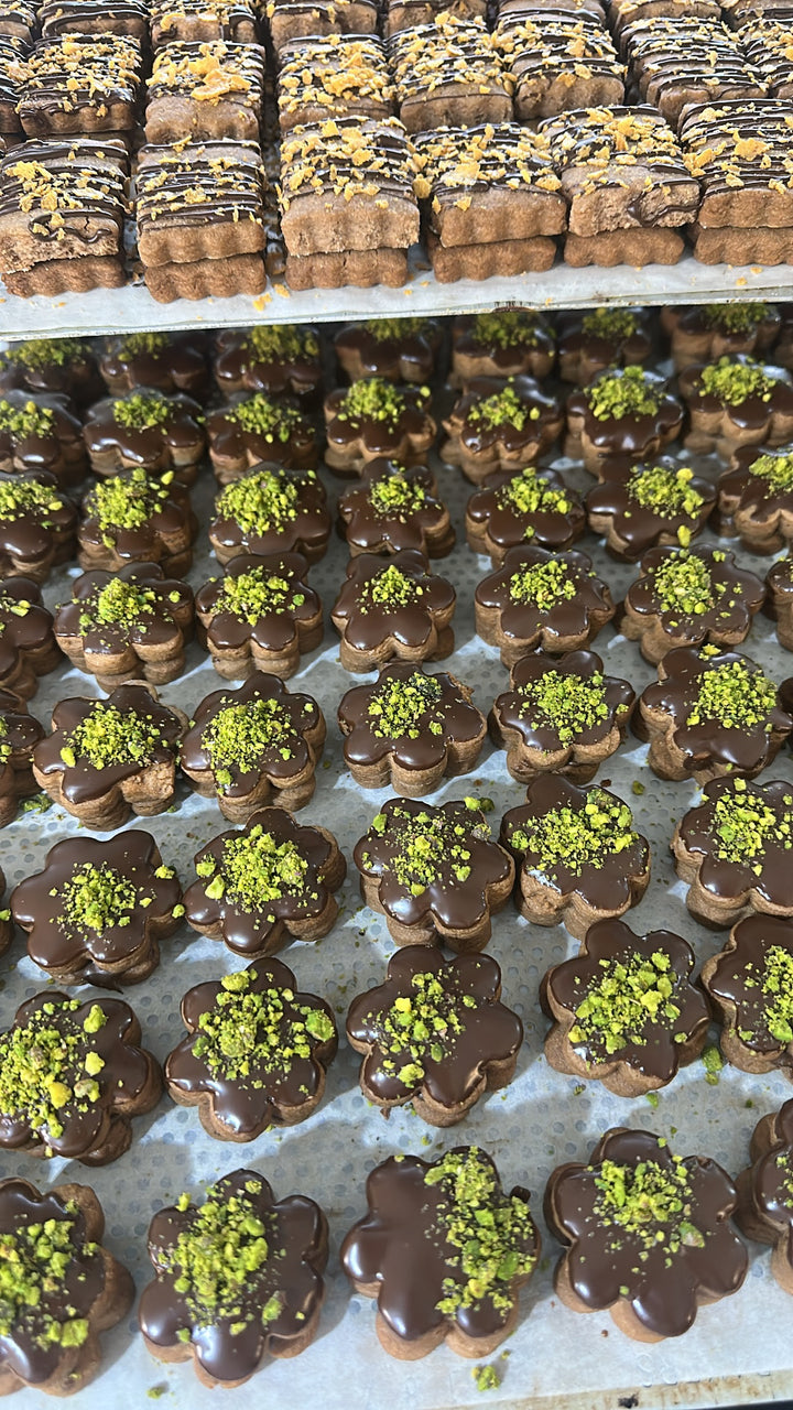 Sableh Mix är en lyxig blandning av spröda och smöriga småkakor, perfekta för både vardag och fest. Varje kaka bakas på en len sablédeg som ger en mjuk, lätt smulig konsistens och en rik smörsmak. Blandningen innehåller olika former och fyllningar — såsom choklad, sylt, nötter och dekorativa toppingar — vilket gör varje bit unik och perfekt för servering eller gåvor.
